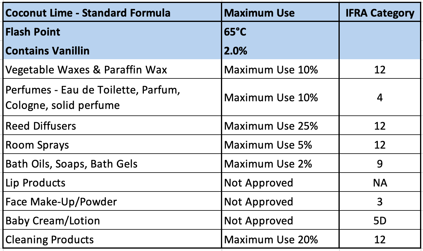 - We provide IFRA statements (safe usage information) for each of our premium grade fragrances. Before using our fragrance oils in a specific application, please review the associated IFRA sheet. IFRA sheets show the maximum amount of fragrance that is considered safe per application.